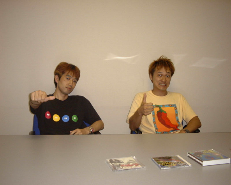 いかがだったでしょうか、Specialインタビュー。 今回はCRACKIN'DJ Part2に関するインタビューということと、私はあくまでも同席だったということで極力S.S.T.BANDに関することは避けて質問をしたのですが、Hiroさん・光吉さんお二方のお話を聞けたということで非常に有意義だったと思います。 CRACKIN'DJも個人的にアーケードで見つけると必ずやっている程好きなので、是非是非皆さんにもやっていただきたい!! っていうかやれ!((C)Hiroさん) 今作CRACKIN'2は初心者にも優しく、レッスンチューンでは光吉さん扮するDJ Nickのハイテンションなしゃべりで それから8/4の東京JOYPOLISイベントではS.S.T.ファンにも堪えられないイベントだと思うので必ず行きましょう! っていうか当日は当ページのオフ会ということになっています。(笑)皆さん、お会いしましょう。 最後になりますが、インタビューの席を設けて頂いた(株)Hitmaker!(※注:当時 現セガ)広報の西村さん。それからインタビューに誘っていただいた、GAME MUSIC MANIA主宰(※注:現在閉鎖)であり、リクルートALL ABOUT JAPANゲームミュージックサイト(※注:現在閉鎖)編集長の中村さん。本当にありがとうございました。これからもよろしくお願い致します。 |