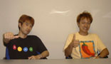 | Hiro: | 細かく言うと、曲のイメージを俺が書き出す。3行くらいで。(一同爆笑) (3行あればまだマシな方です(光吉さん)) それをデザインの宮岡に回してそれを元にしてまず日本語の詞を書いてもらう。更にそれを外部の人に英語に翻訳してもらって、ラッパーの外人さんに渡して歌ってもらう、と。 だから曲の中の詞はなんて歌ってるのか知らないの。(爆笑) |